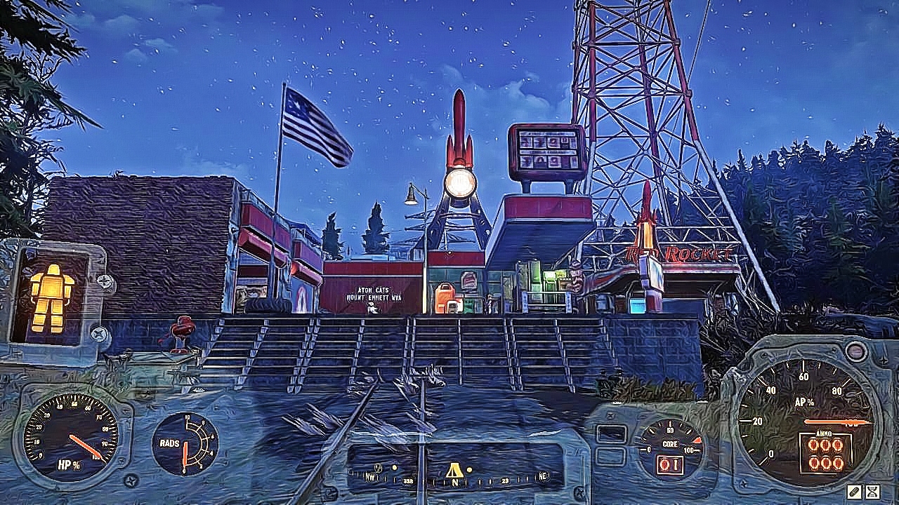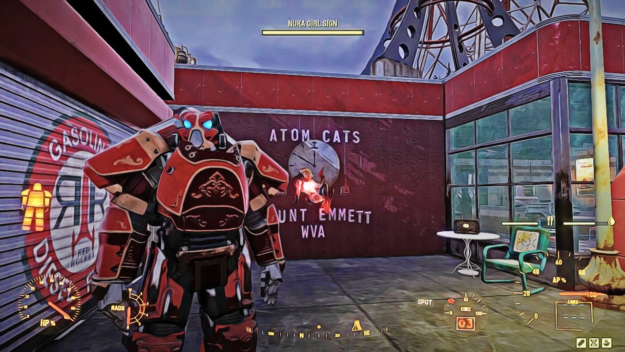 This joint takes the worn out power armor rigs and soups them up with style and swagger as well as making them more powerful for the user. The Atom Cats Red Rocket at Emmett Mountain is THE go-to place for anyone wanting a rad ride that will protect them in the wasteland.
