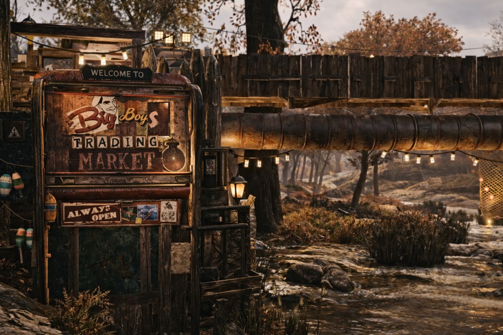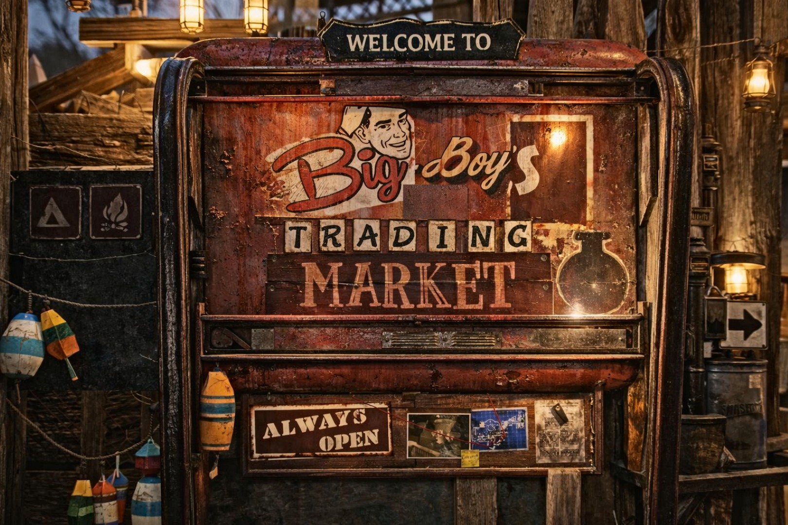 Word spread fast in Appalachia. Raiders, settlers, drifters, and wanderers all passed through Big Boy’s Trading Market, because in a broken world, trade was power and connection was survival. Chicken Bone didn’t rebuild civilization—he gave it a place to breathe. Under flickering lights and creaking signs, people didn’t just buy, sell, or trade. They planned, they listened, and they endured. And as long as the wheels kept turning, Big Boy’s Trading Market stayed open to anyone willing to deal straight in a crooked world.