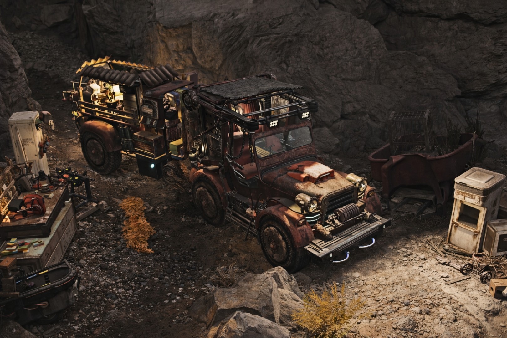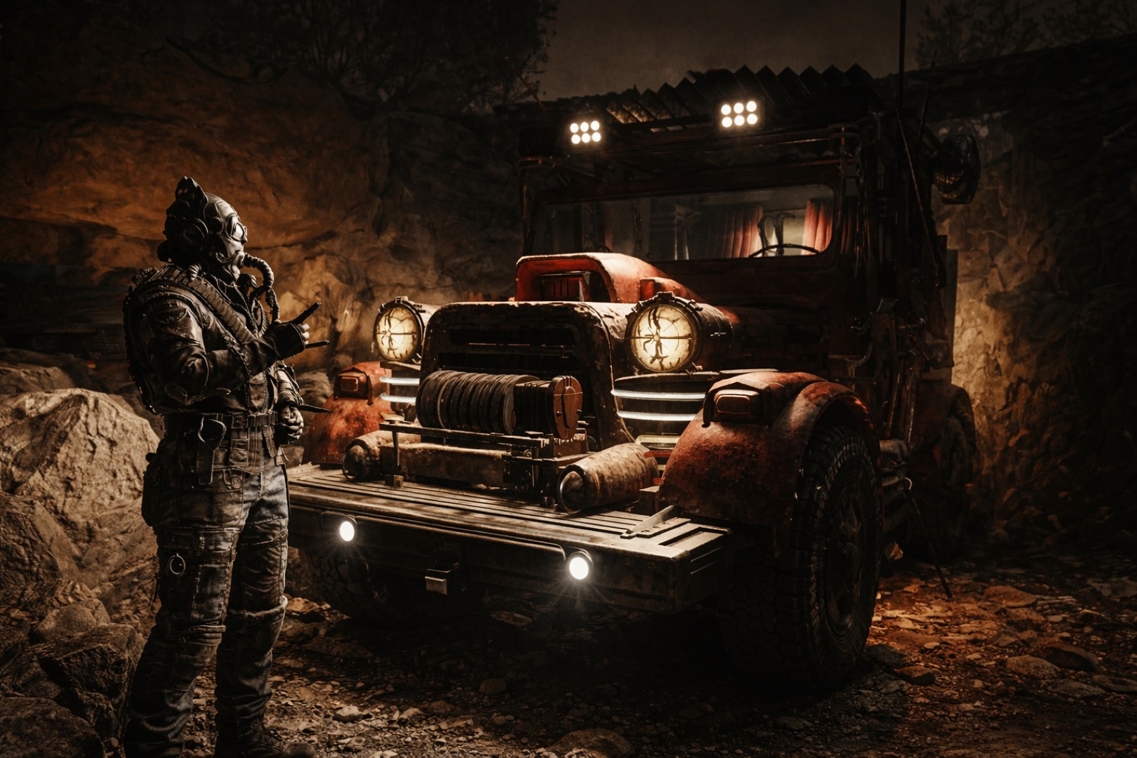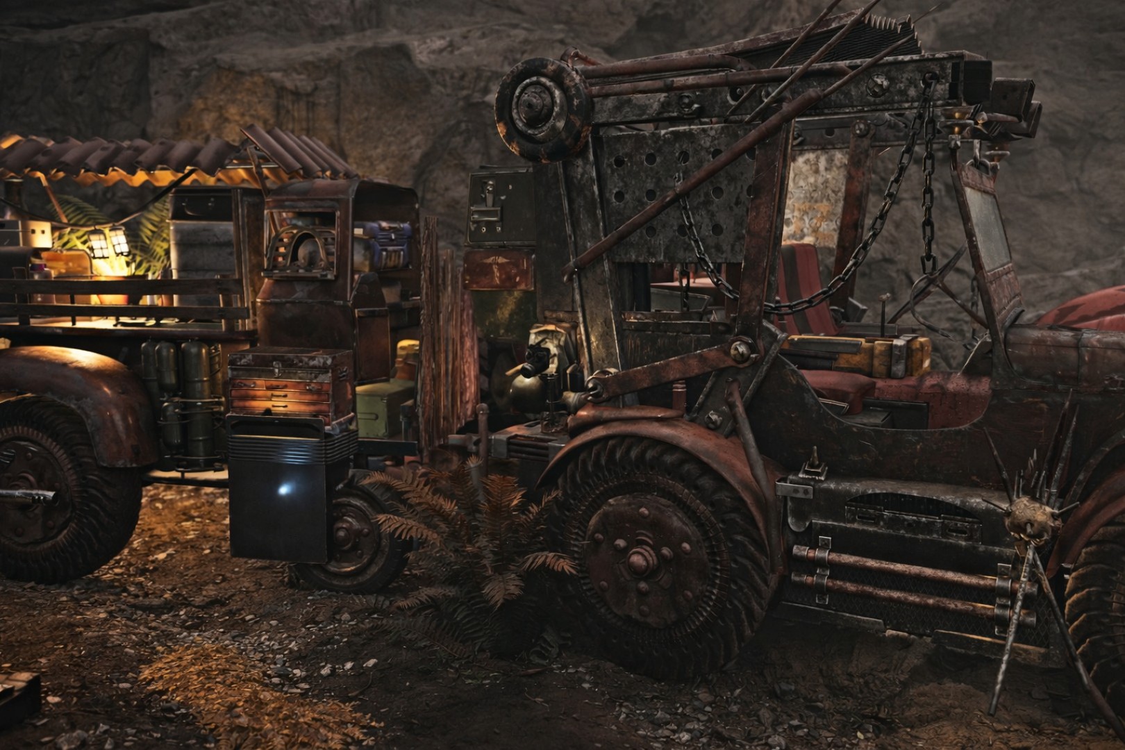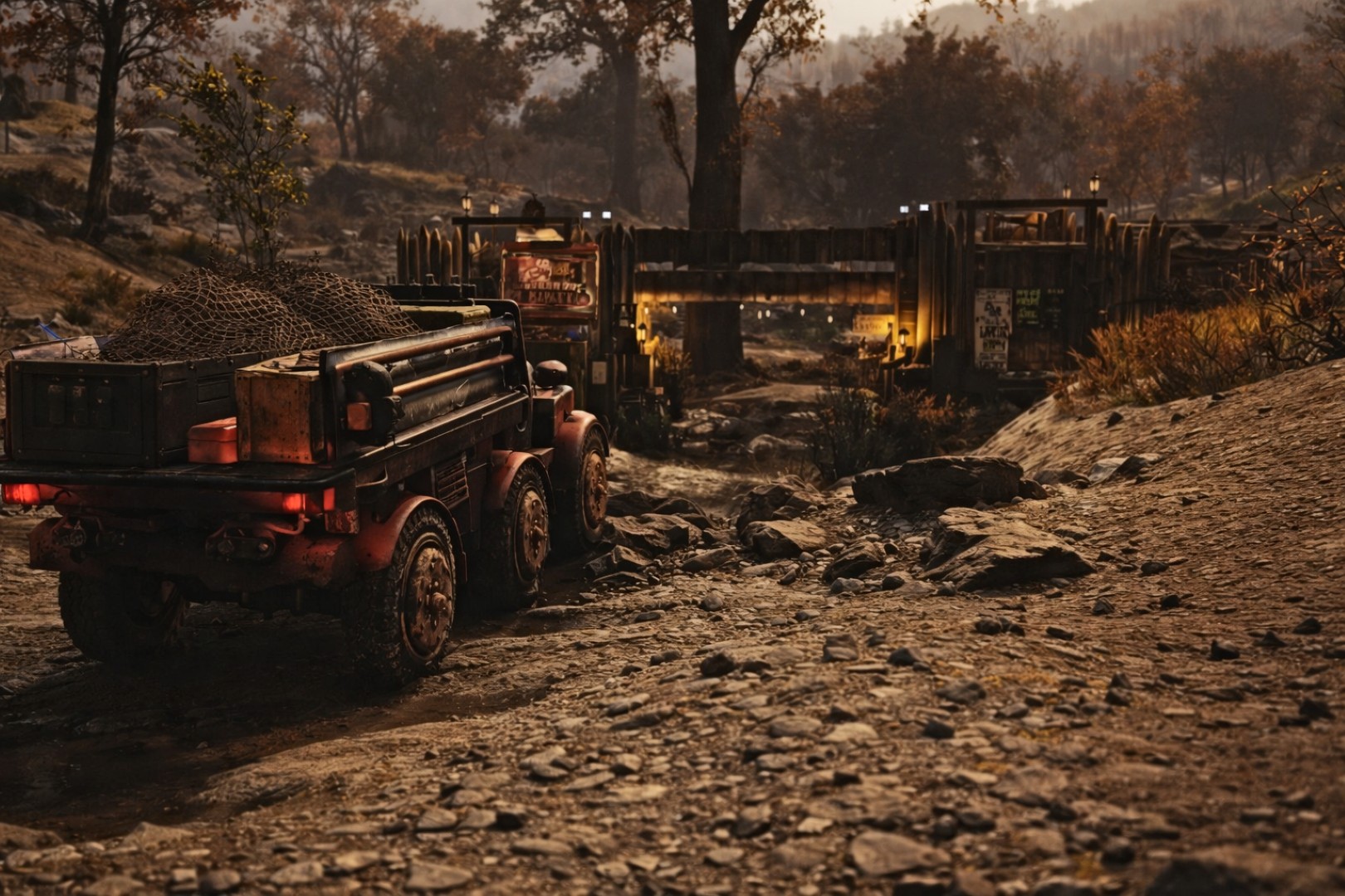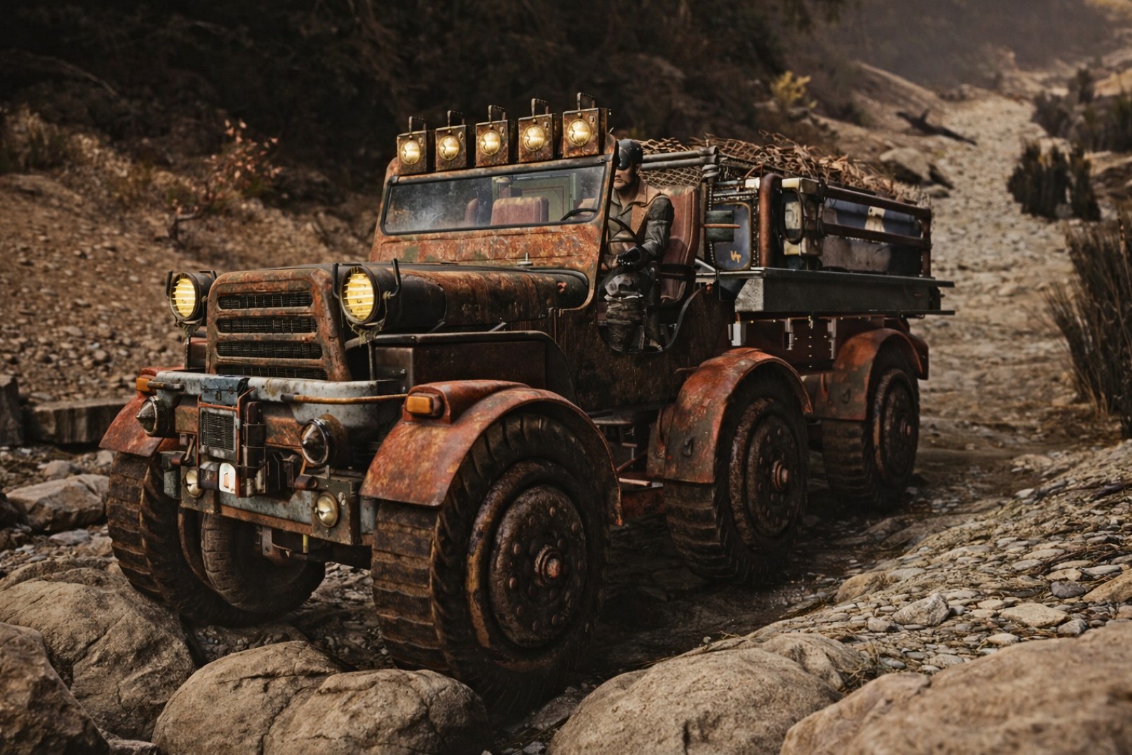 Appalachia had cracked and rusted like the roads that ran through it, but Chicken Bone understood something most didn’t: survival wasn’t just about firepower, it was about leverage. While others fought over scraps, he built machines—patched-together, all-terrain beasts that could crawl riverbeds, climb shale hills, and punch through forests no map remembered anymore. Every trip brought back something worth keeping: tools, ammo, heirlooms, rumors. Bit by bit, value piled up, and Chicken Bone realized the wasteland didn’t just need scavengers—it needed a place to trade.