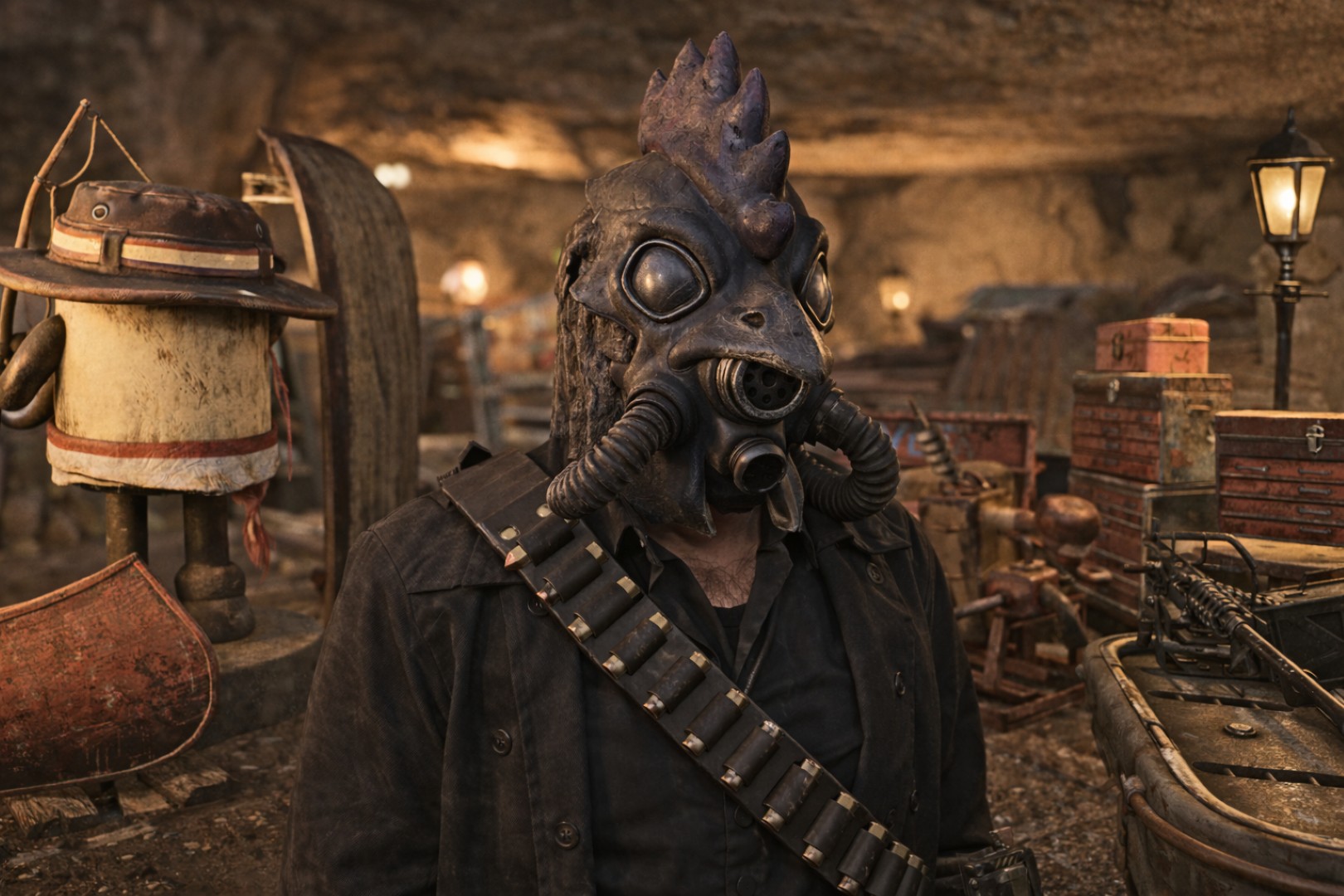But Chicken Bone didn’t just build to survive—he built to dominate. In the wasteland, strength wasn’t about size; it was about preparation, lethality, and resolve. He trained his body the same way he built his camps: relentlessly, stripping away weakness and reinforcing what mattered. Raiders learned quickly that the thin man in the gas mask was no easy target. The kid who once got shoved into lockers became a force that shoved back—harder, smarter, and without mercy. In the ashes of the old world, Chicken Bone finally stood unmovable.