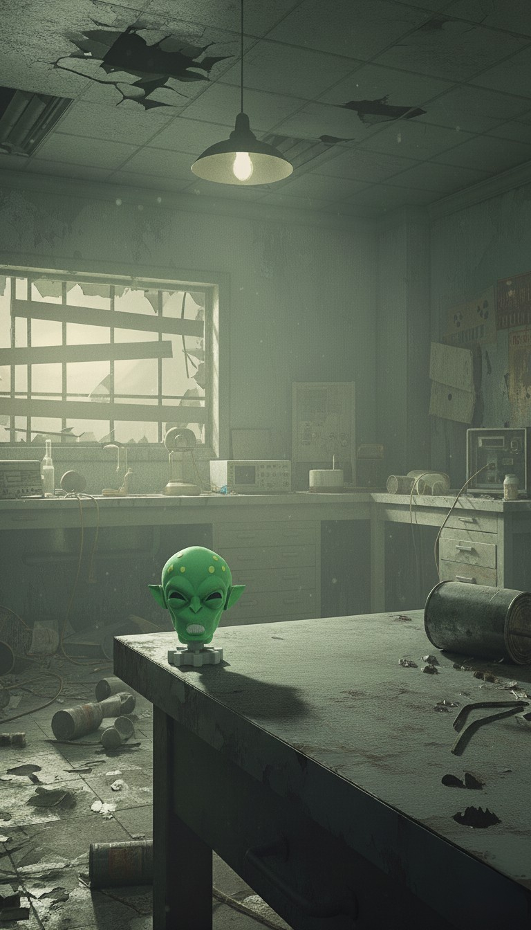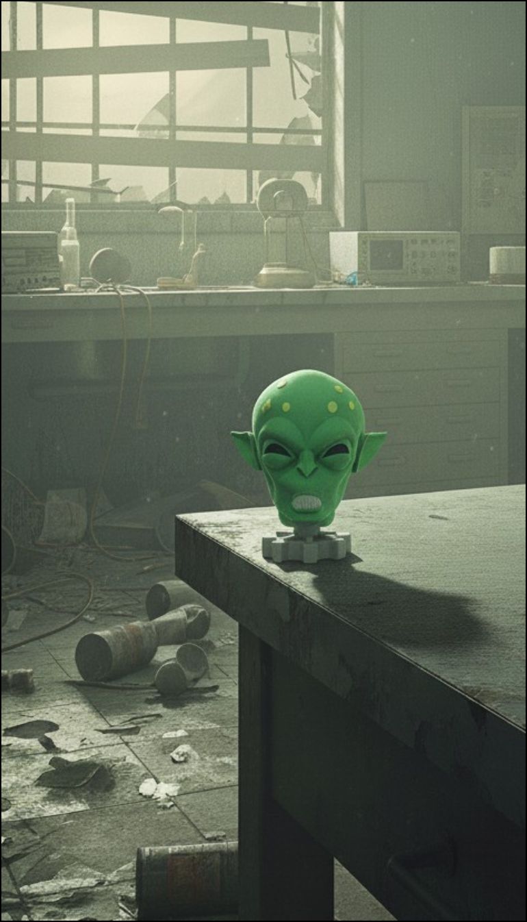 Decorate your home or business to celebrate Fasnacht in true pre-war Helvetia style with this Fasnacht Alien mask figurine, inspired by the Alien Fasnacht mask from Fallout 76. The figurine stands 5" tall and 3" wide and sits on a removable vault door base, available in white, black, silver, or wood to match your space or display style.