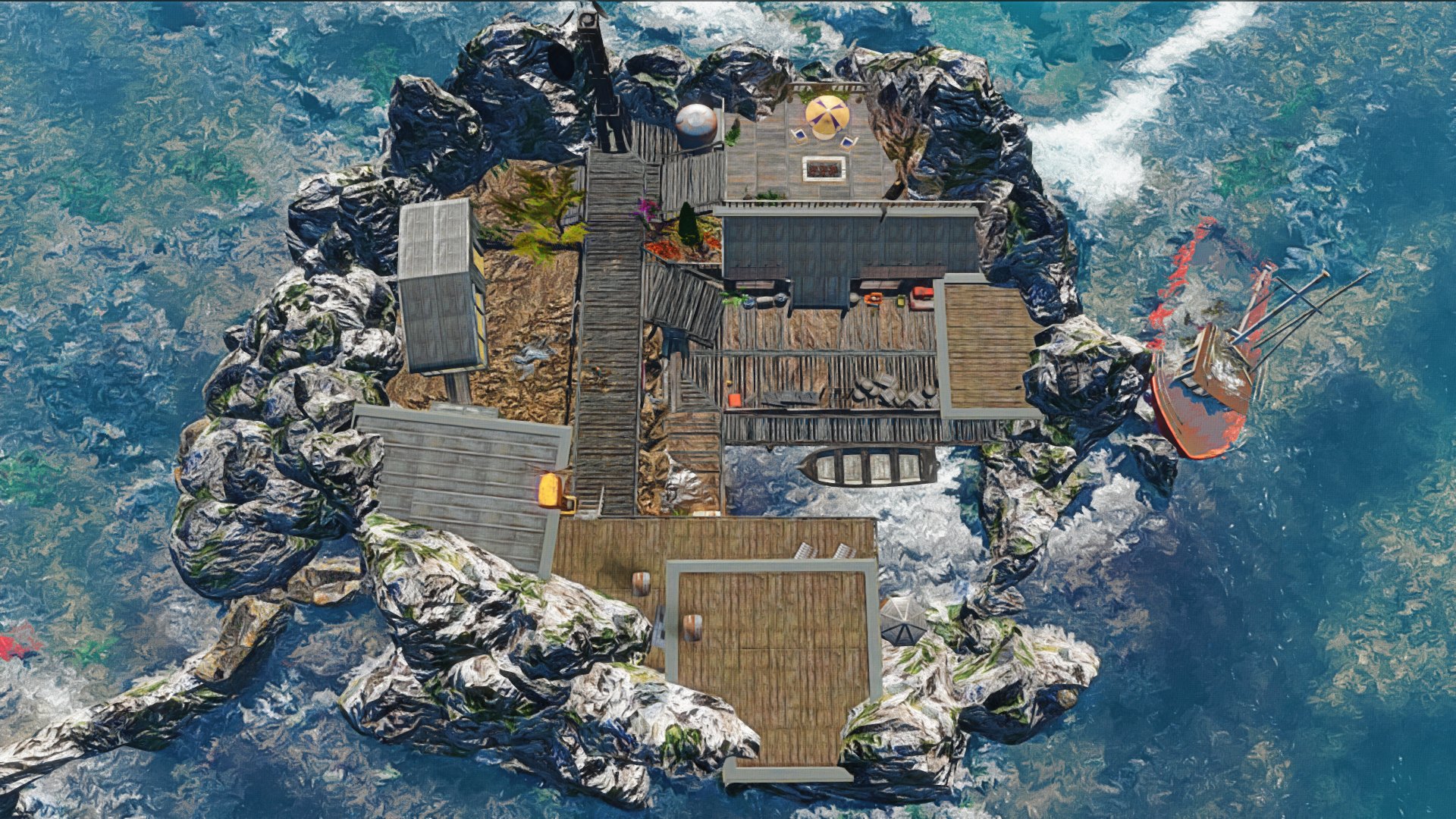 Off of the coast of the remains of Boston you will notice a circular outcropping of rocks that looks so perfect that they would appear to be hand placed there. What you won’t notice is sitting in the middle of this circular rock outcropping is a nautical homestead that is both quaint and exotic. This homestead is referred to by its owners as the Salem Island Homestead.