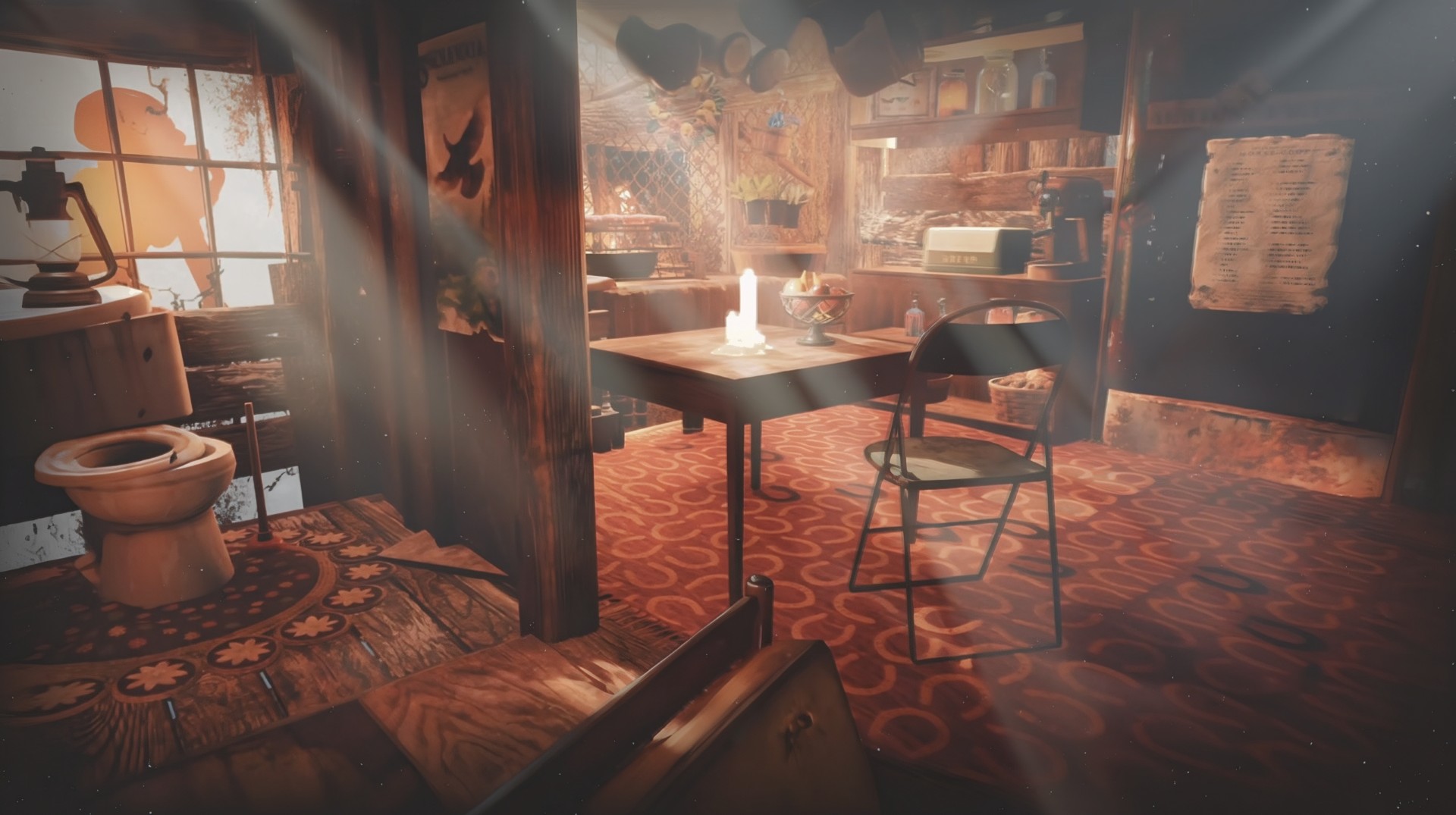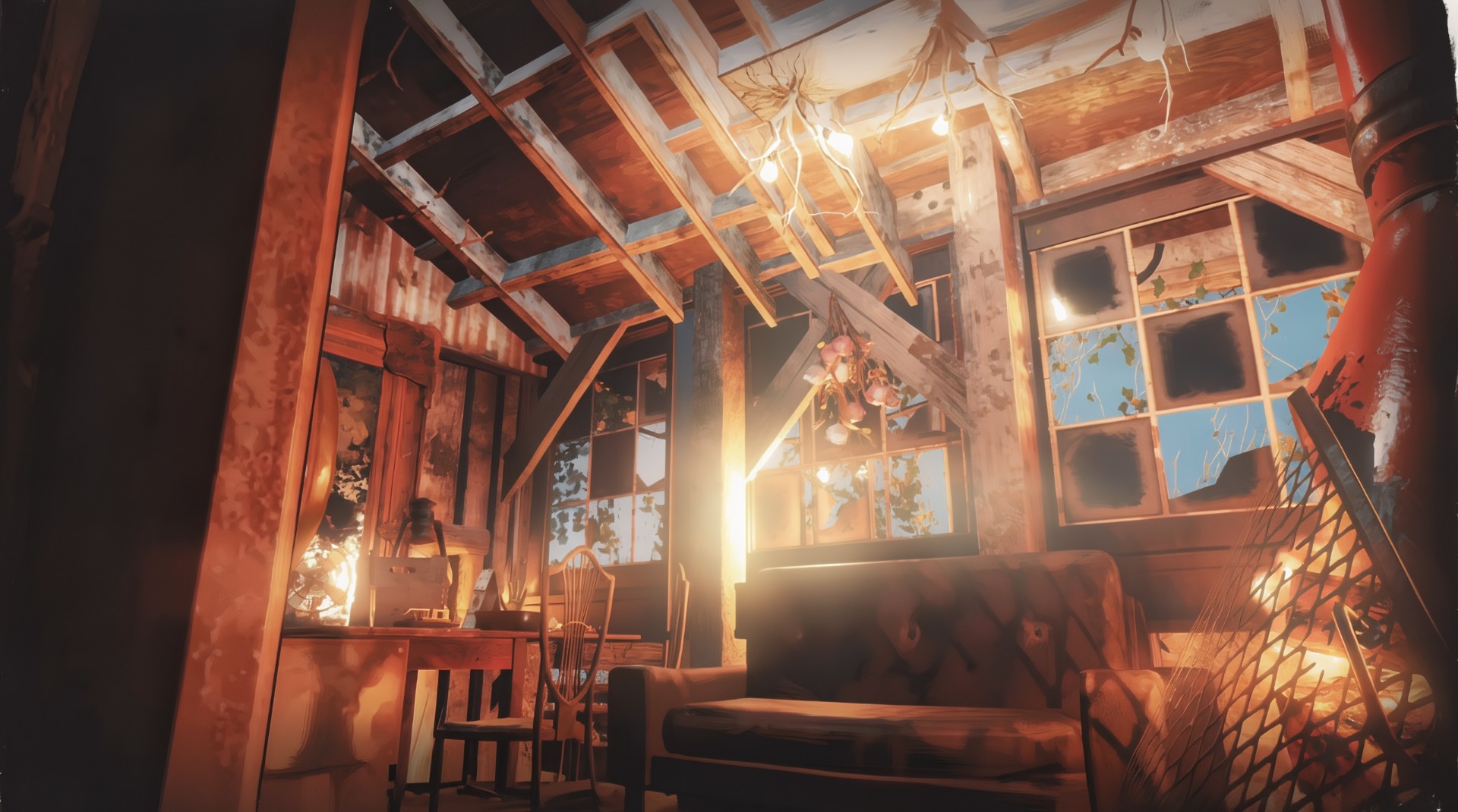 And what Deviant Cat had was grit, a toolbox full of half-bent nails, a mean swing with a hammer, and enough stubbornness to outlast the end of the world twice over. So she hauled planks up ladders, strung lights through branches, patched leaks with sheet metal, and turned every creak and groan of the old place into charm instead of complaint. She planted little pots of flowers on the porch. Hung curtains in the windows. Painted scraps of wood just because they needed brightening up.