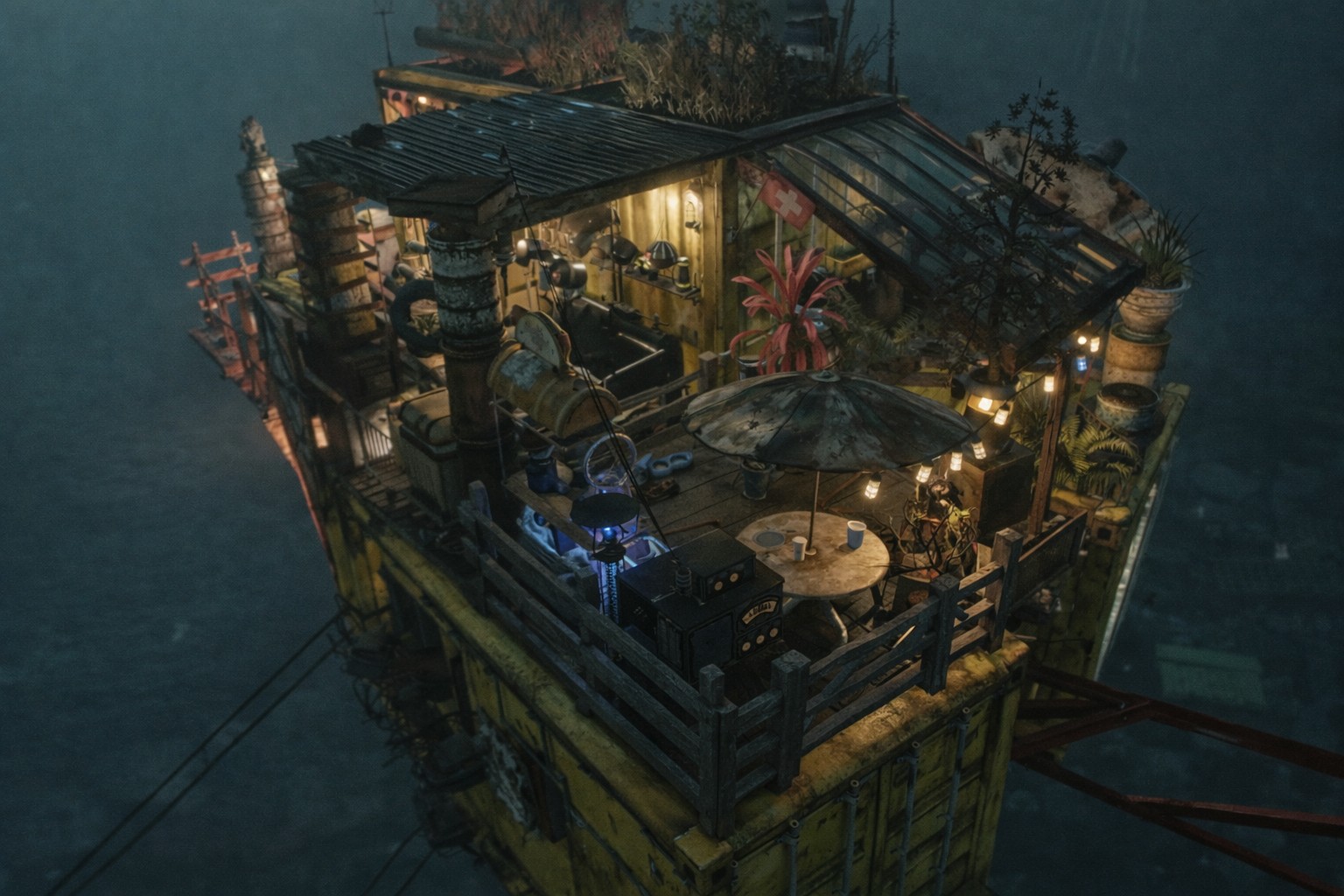 High above the foggy Mire, a ramshackle camp made of yellow shipping containers and scrap metal sits improbably atop ...