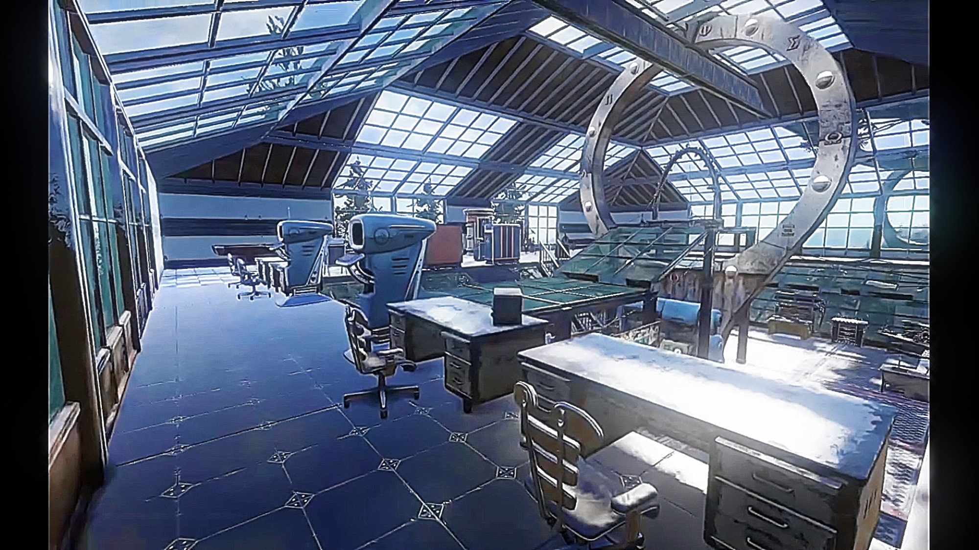 Walking under the old remains of the elevated train in the region commonly referred to as the Savage Divide you will come upon a peculiar structure suspended from one of the decaying ring structures. This station, built by the out of this world builder Onyx Nightshade, is thought to house experiements of extraterrestrial nature. There are reports of scientists working in the station and disappearing in the middle of the ring and then reappearing some time later. It also seems there is a quasi-militarized contingent occupying the station, keeping any curious wastelanders at bay. So not much else is known of this place, other than if Onyx Nightshade is involved then supernatural experiments are at work.