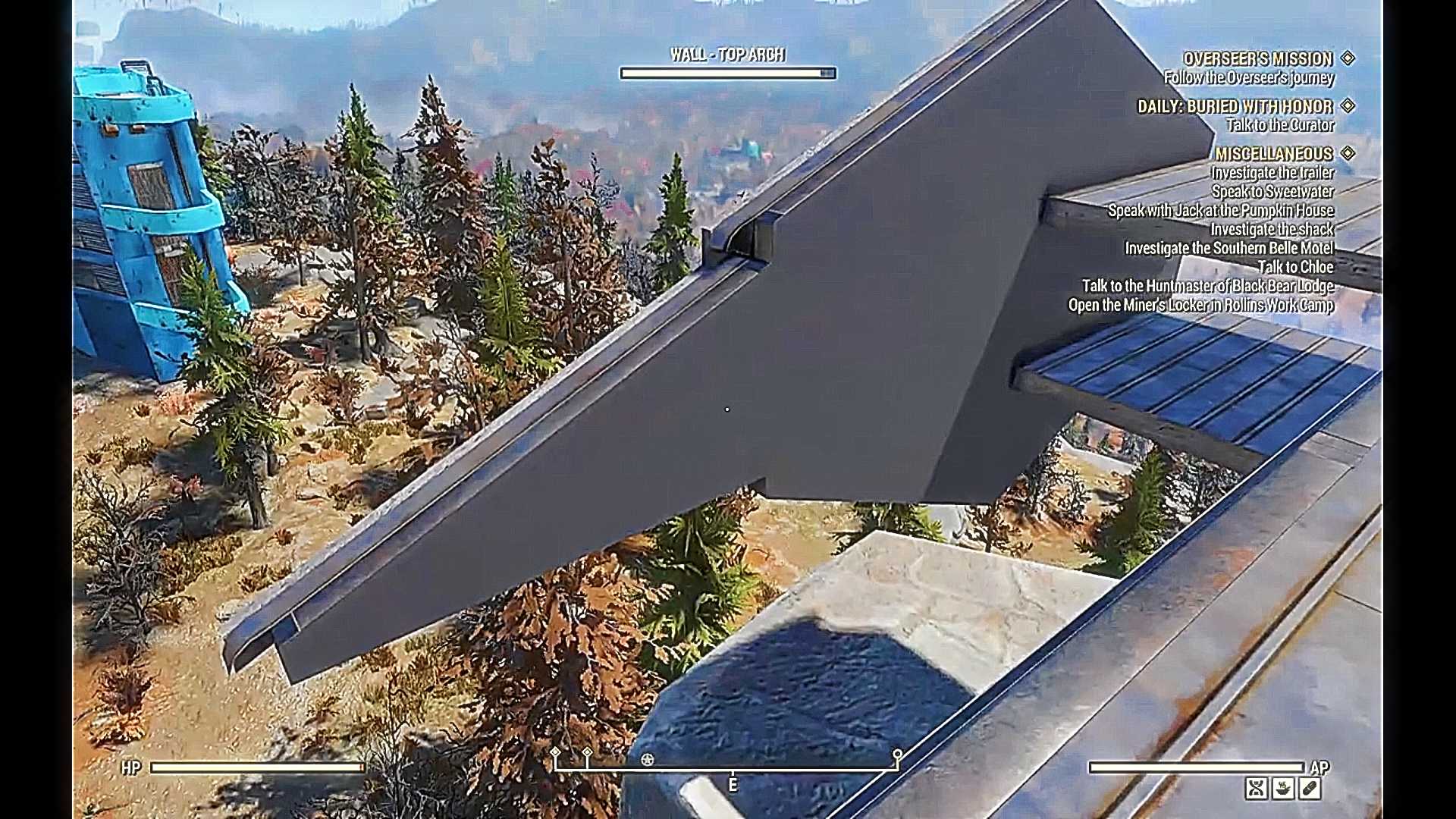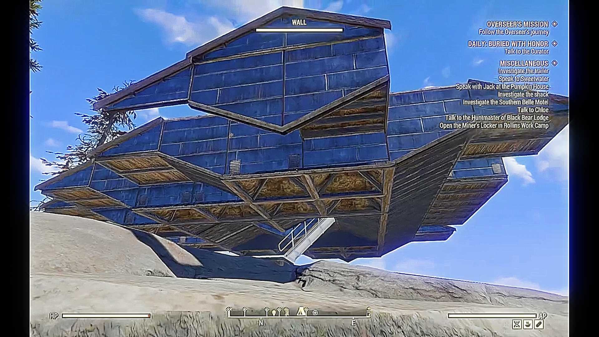 The strange, alien-like Onyx Nightshade, who roams the wasteland often wearing a full spacesuit, has constructed an unsettling yet thrilling site perched upon the hills next to the remains of the West Tek laboratory. This can only be described as a spaceship, or maybe some kind of high-altitude ship due the wind-resistance structures on it. Its purpose is unknown, but is for sure a unique build in this decaying landscape.