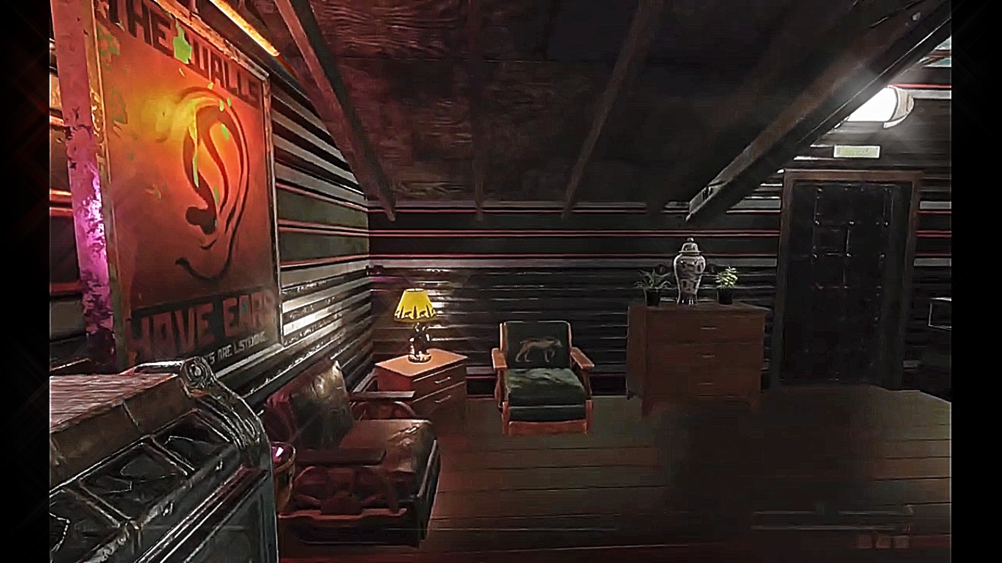 The Starshade is a, for lack of any better word or description, a spaceship that has baffled the local wastelanders for months when it appears hovering over the ground in strange and unexpected places. This spaceship is a wonder in itself, but it seems that Onyx Nightshade isn’t content with just that. It seems that she has also taken into the consideration the complete needs of its crew by adding a fully-fledged officer’s lounge and meeting space to ensure comfortable trips to the stars.Â