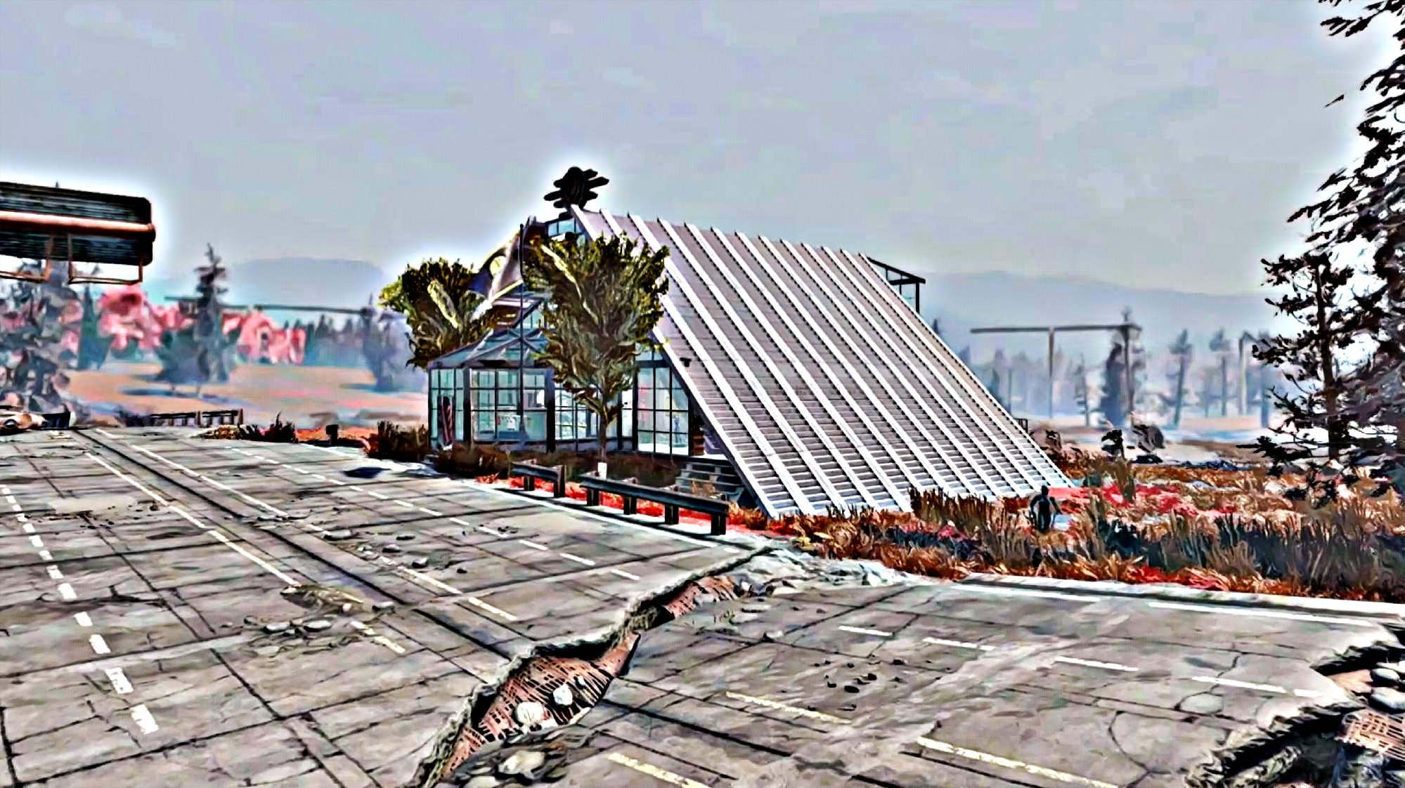 The structure that houses the Watoga Biological Sciences Center was constructed by the nomadic Daka The Wanderer. It is an a-frame construction with lots of open spaces for effective collaboration between the staff. It also houses a super reactor at its center to provide plenty of power to the building. The a-frame construction was an innovative construction by Daka, pulled off by using old Vault Tec vault stair pre-fabs.